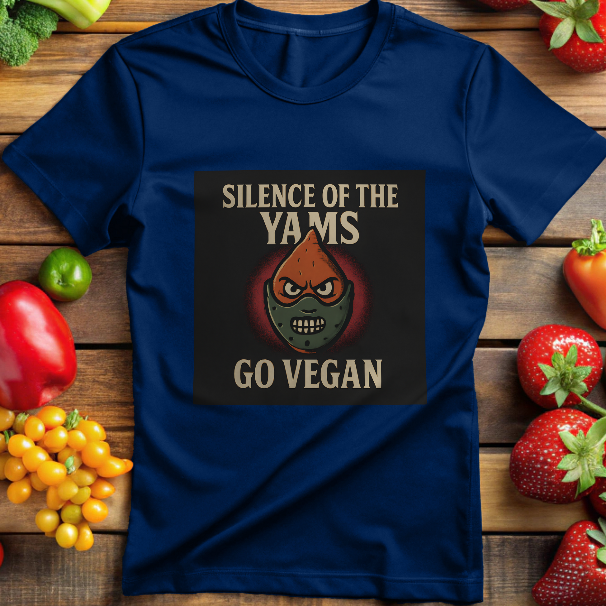 Forget fava beans and Chianti. This horror parody t-shirt serves up compassion with a side of roasted root veggies. Our Silence of the Yams – Go Vegan T-shirt is perfect for Halloween parties, vegan movie buffs, or anyone who enjoys a good pun with a powerful message. It’s spooky, silly, and seriously kind.