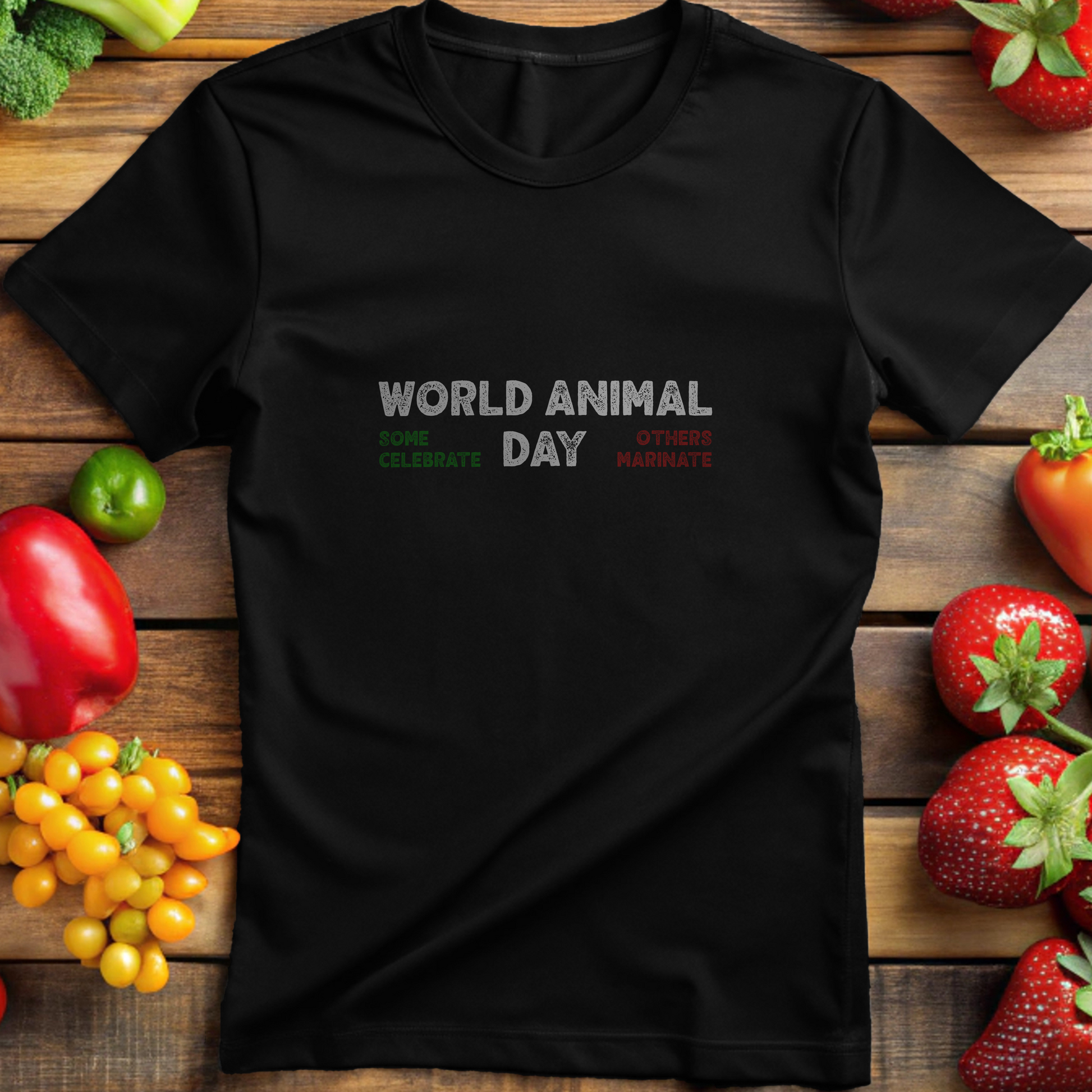 It’s the day the world claims to love animals, but what’s on the grill says otherwise. The World Animal Day: Some Celebrate, Some Marinate T-shirt is a sharp, eye-opening reminder that true compassion doesn’t stop at pets. It’s for those who choose to celebrate animals with kindness, not condiments.